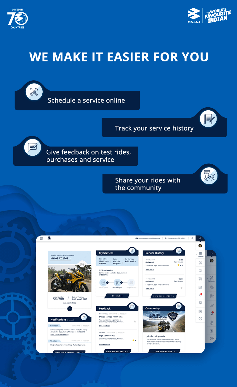 Use the Bajaj Auto mobile app to order spare electronic parts from any of the Bajaj dealers. Available for customers and dealers as well.
